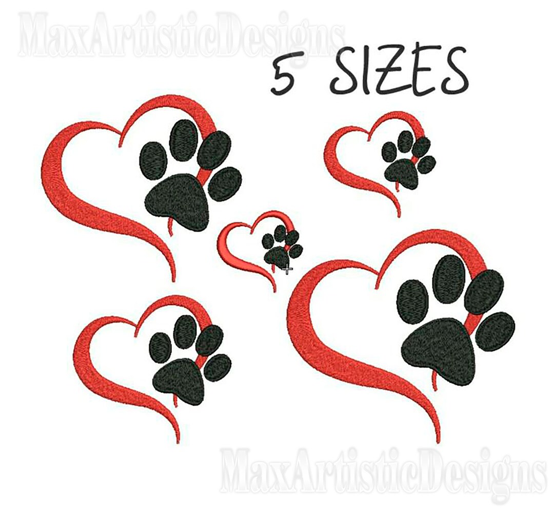 Buy Dogs Paw Heart Print Machine Embroidery Design Love Dog Heart Online In India Etsy